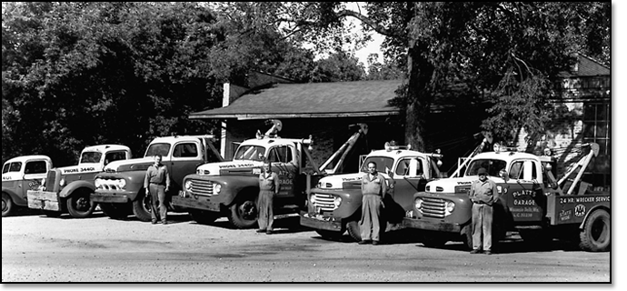 Martin Platt Sr. founded the business in 1919 in downtown Wisconsin Dells. They initially started in auto repair, but quickly added a towing service to the operation. As they came of age, the Platt sons—Marvin, Duane and Martin Jr.—joined the family business. The fleet grew to two F-6 Fords, two F-8 Fords and a 1937 Ford, all homemade wreckers built in the Platt garage.